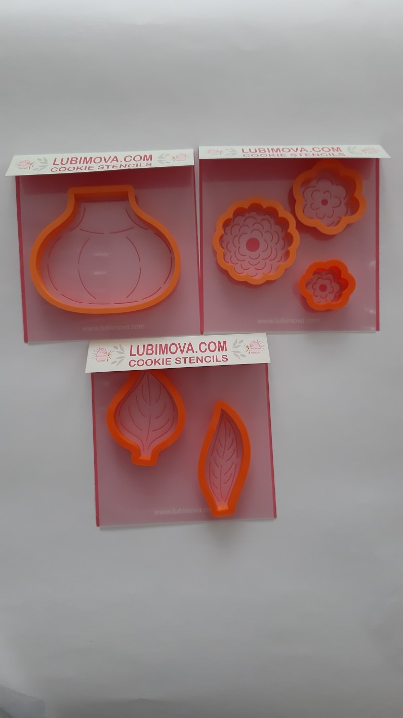 Резак пластиковый для печенья Вазочка с цветами + трафарет
